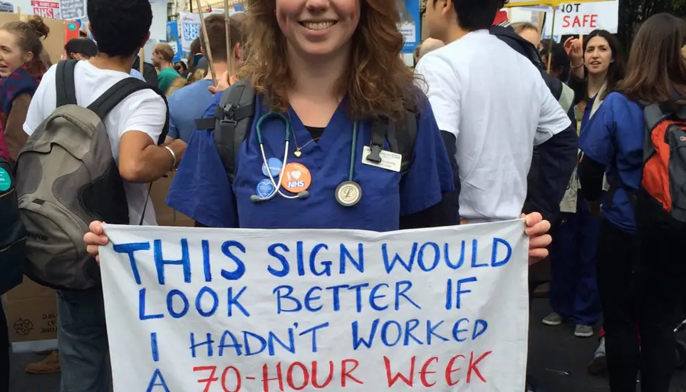 Nem sempre foi assim no Reino Unido, muito desta regulamentação veio após a greve dos junior doctors em 2015, que exigiu uma mudança significativa nos contratos destes. Em parte, a reivindicação deles foi que eles eram obrigados a trabalhar em um sistema de sáude superlotado, com carga horária acima do que estava na lei (40 horas por semana), em unidades com “pouca” estrutura, e não eram pagos corretamente pelo tanto de horas extras que faziam (o que a nós brasileiros soa muito familiar). Isso em 2015 resultou em uma grande greve com repercussão nacional, o que mudou muito essa questão para os médicos que trabalham no UK. O livro de Adam McKay “This is Going to Hurt” sobre a sua experiência no NHS foi escrito antes dessa greve, e ele mesmo fala como aquilo não representa a realidade atual.